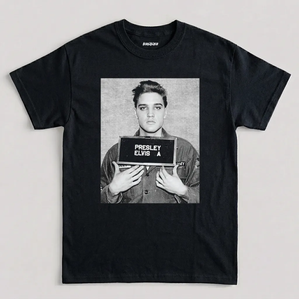 Elvis Presley Mugshot 1960 Vintage Graphic T-Shirt, Elvis Presley Fan Unisex T Shirt, Elvis Army T Shirt, Elvis Presley Vintage Shirt, Elvis Presley Graphic Tee, Elvis Presley Unisex Jersey Short Sleeve Tee, Elvis Is Dead Shirt, Elvis For Ever Shirt, Elvis Presley Printed Tee, Shirt For Men And Women, Elvis Black And White Shirt.