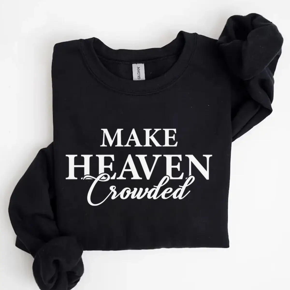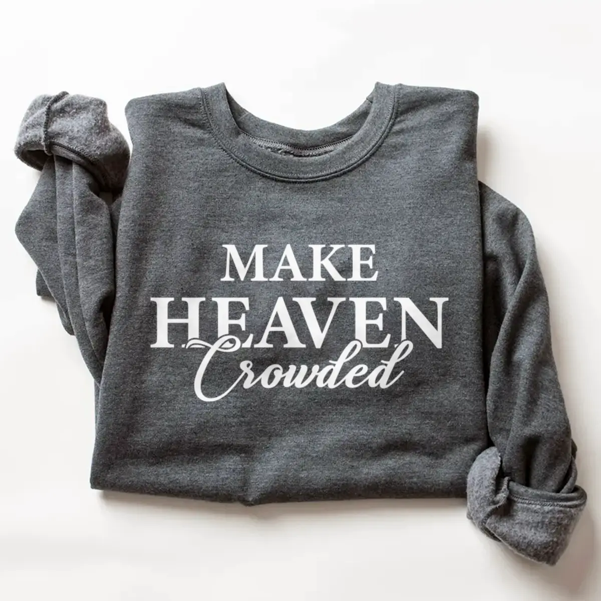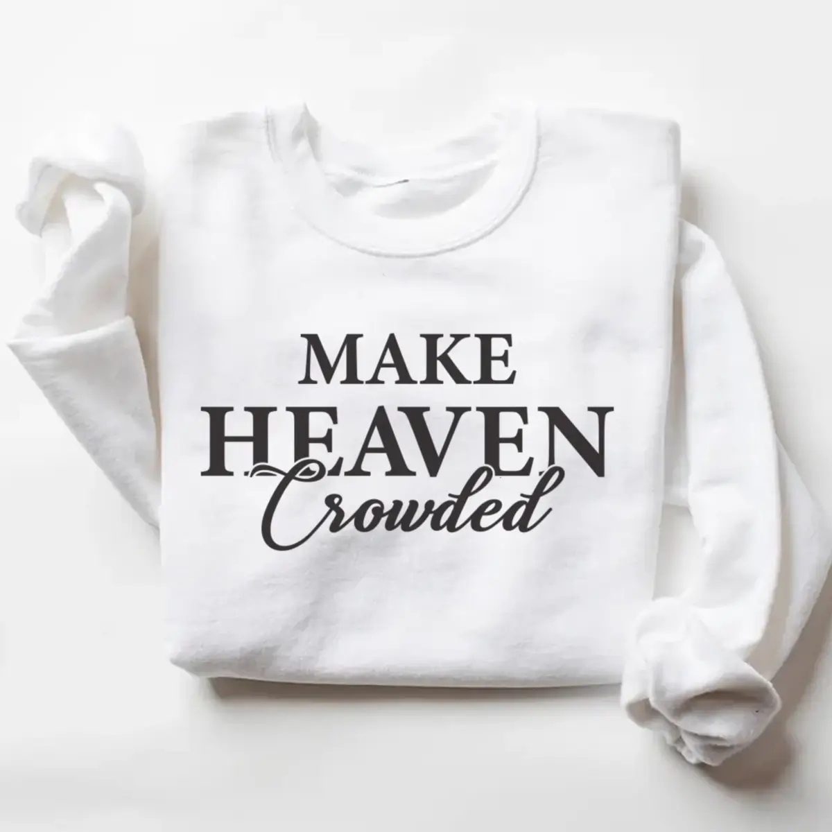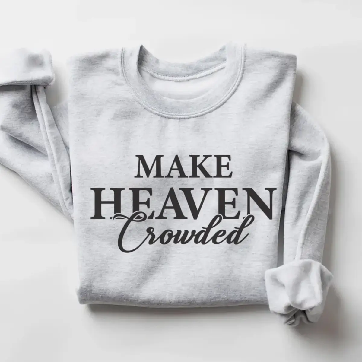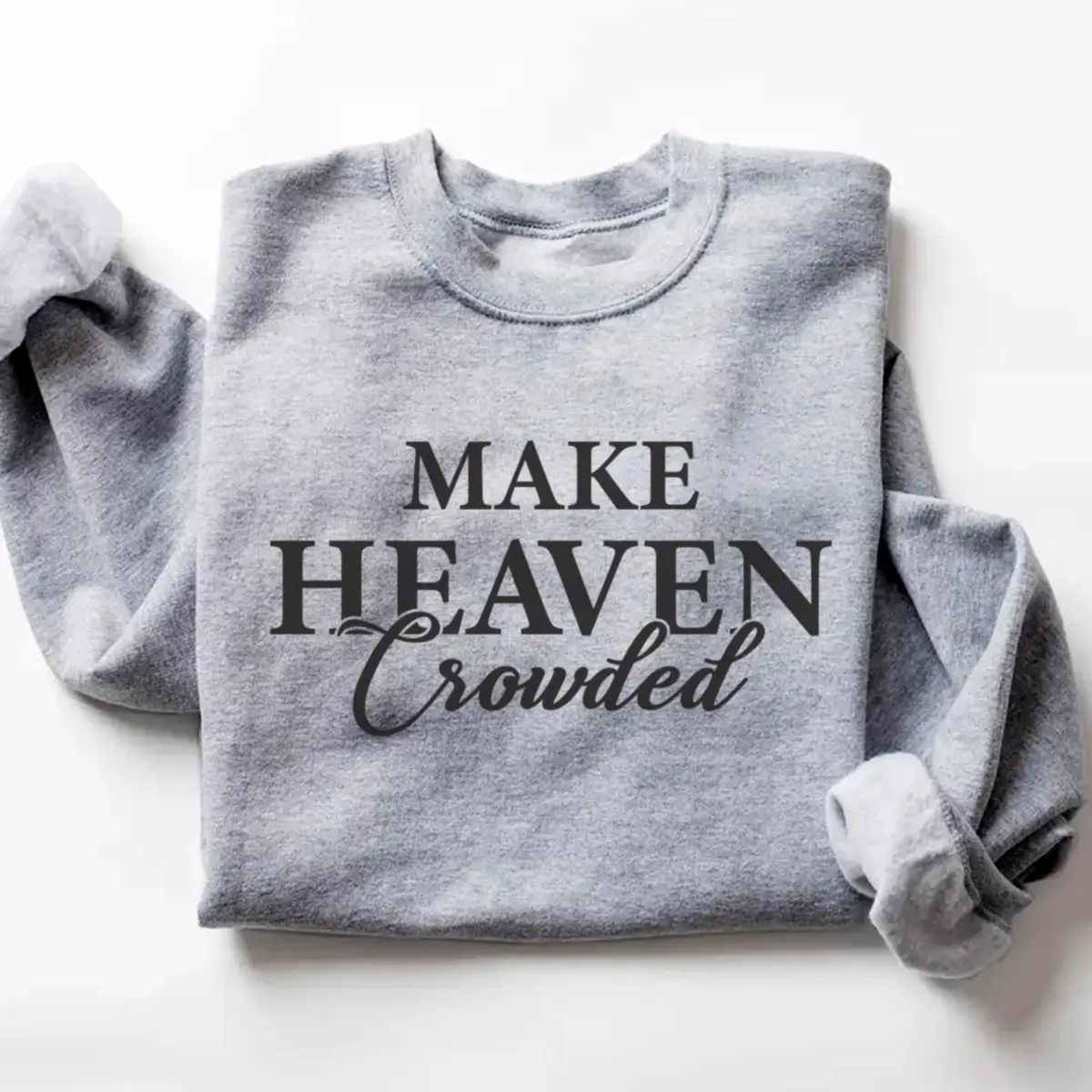 Carry your faith with confidence in our “Make Heaven Crowded” Christian Sweatshirt, designed to inspire and uplift wherever you go. This soft, cozy crewneck combines timeless style with a powerful message — a daily reminder to live with purpose and spread love.